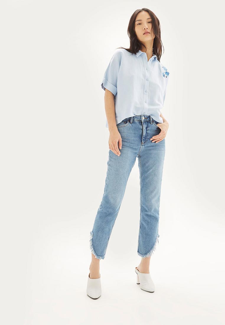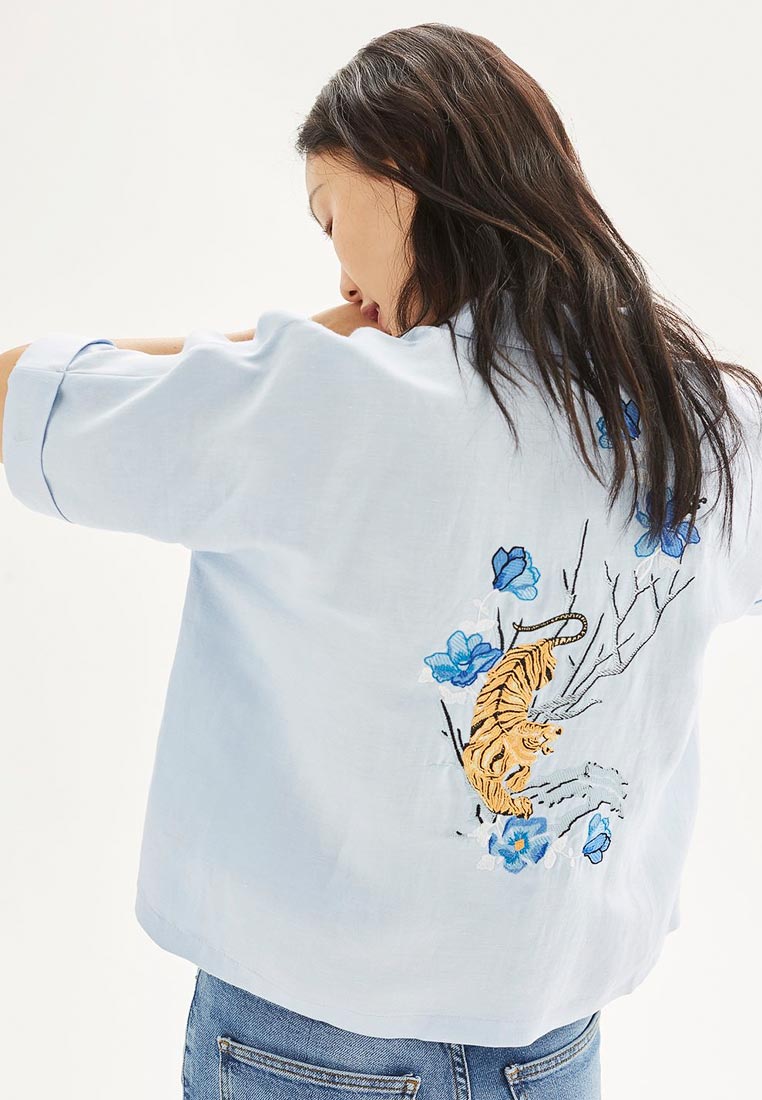 Рубашка Topshop выполнены из легкого текстиля. Модель укороченного кроя.