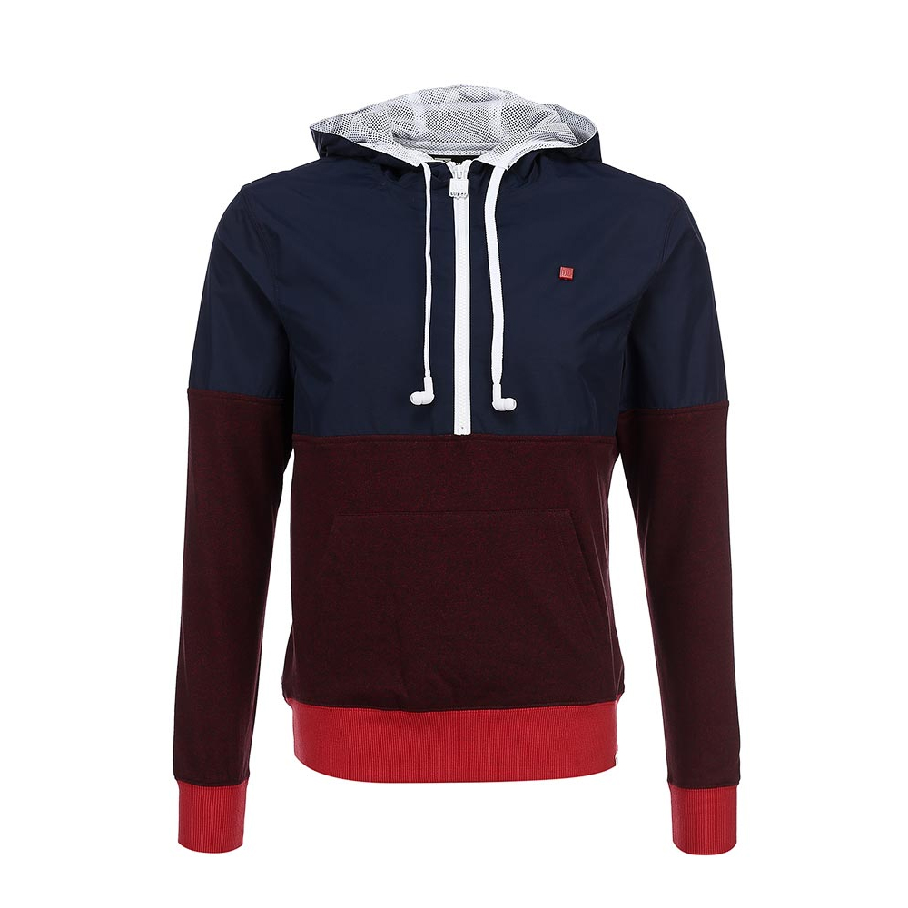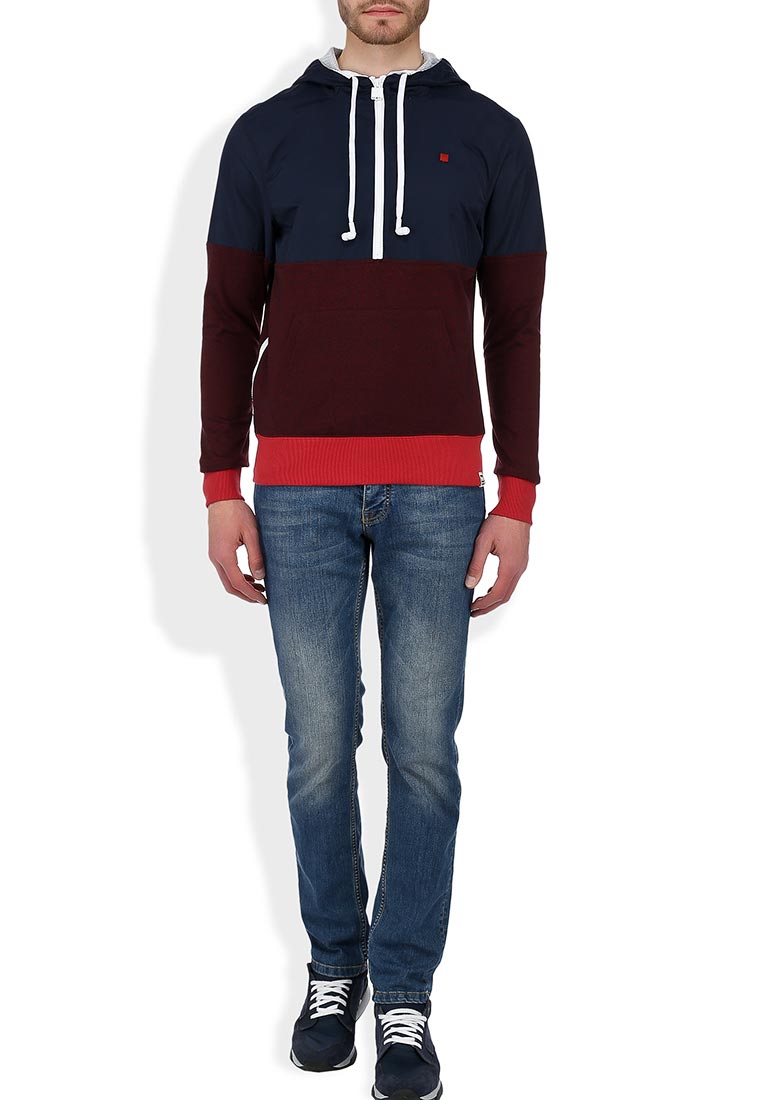 Толстовка HoodieBuddie сине-бордового цвета с капюшоном, небольшой молнией по центру и карманом-кенгуру.